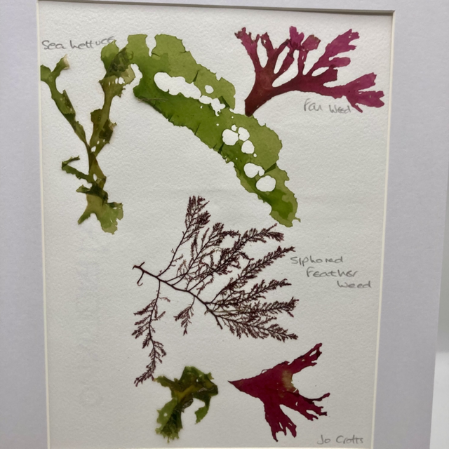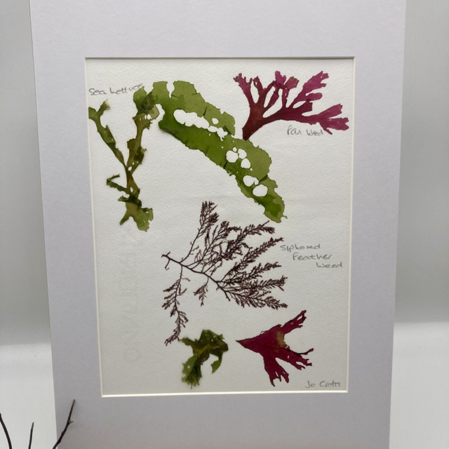 This seaweed has been responsibly collected by hand from beaches in Devon and Cornwall. The seaweed is then pressed onto watercolour paper and mounted ready for framing.