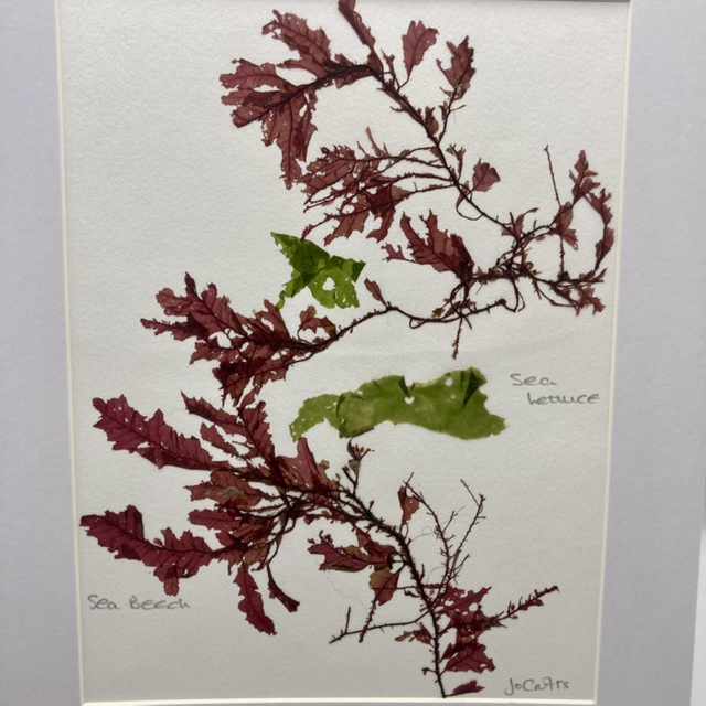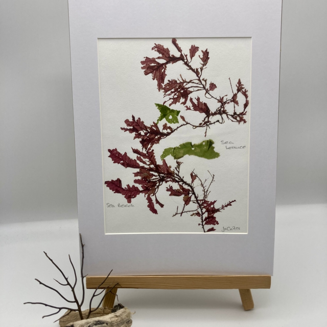 This seaweed has been responsibly collected by hand from beaches in Devon and Cornwall. The seaweed is then pressed onto watercolour paper and mounted ready for framing.